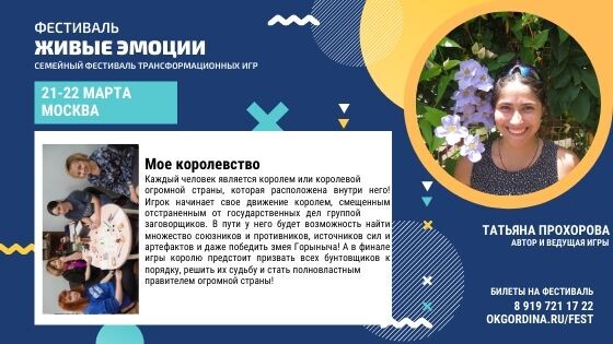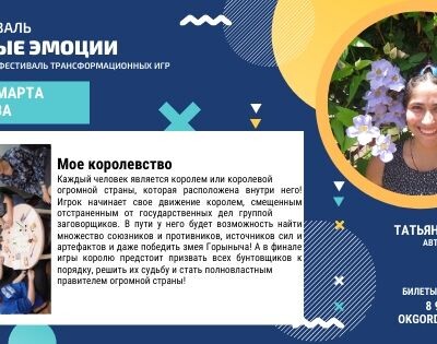 Фестиваль игр — мероприятие с трансформационным играми, направленное на повышение психологического развития и личной экспертности без отрыва от семьи.