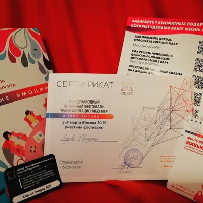 Мои призы за "Эмоциональный дебют": сертификат и книга Оксаны Гординой "Крылья для воображения" и "Эмоциональное интервью": подарочный сертификат на обучение.